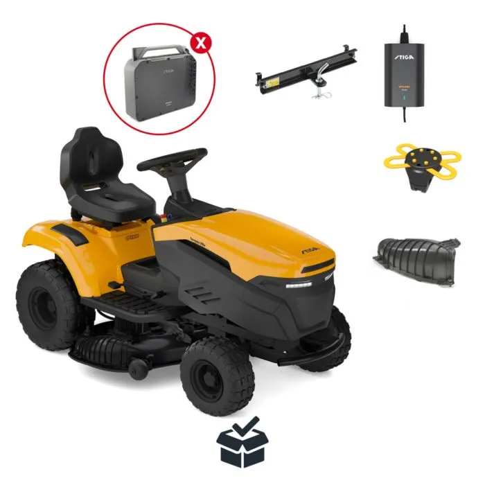 Traktoril on täiselektriline ülekanne, mida juhitakse ühe pedaaliga. Juhtpaneeliks on digitaalne LE-ekraan, rool on STIGA uue mugava disainiga ning iste on reguleeritav. Samuti on olemas LED-esituled, pesuühendus, hoiupaik ja tassihoidja.